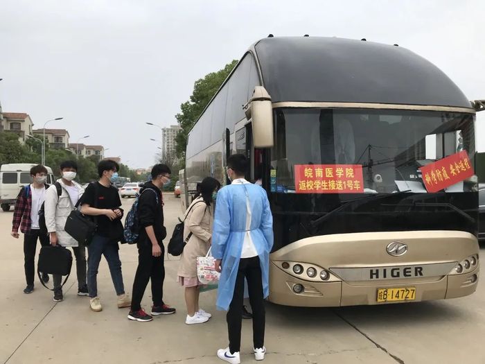 学生返校前,学校对返校学生传播疾病的风险进行评估,建立分类台账,根据评估结果分类进行管理,持续做好信息摸排。学校防控工作部门详细统计了返校学生具体信息,包括启程时间、抵达时间、交通工具、车次安排、人员陪同等在内的关键信息,做到“一人一案”,准确掌握每名学生的返校动态。各二级学院采取“人盯人”措施,全面掌握返校学生返程动态,并与学生家长保持紧密联系,依法依规,严谨细致做好学生返程登记和备案等工作。同时,研究生学院和各二级学院毕业班辅导员通过易班、QQ、微信等线上平台提醒返校学生做好安全防护等工作。根据返校学生乘车方式、到站时间、地点等信息,学校积极安排教工志愿者赴芜湖市火车站、汽车站配合做好接站工作。