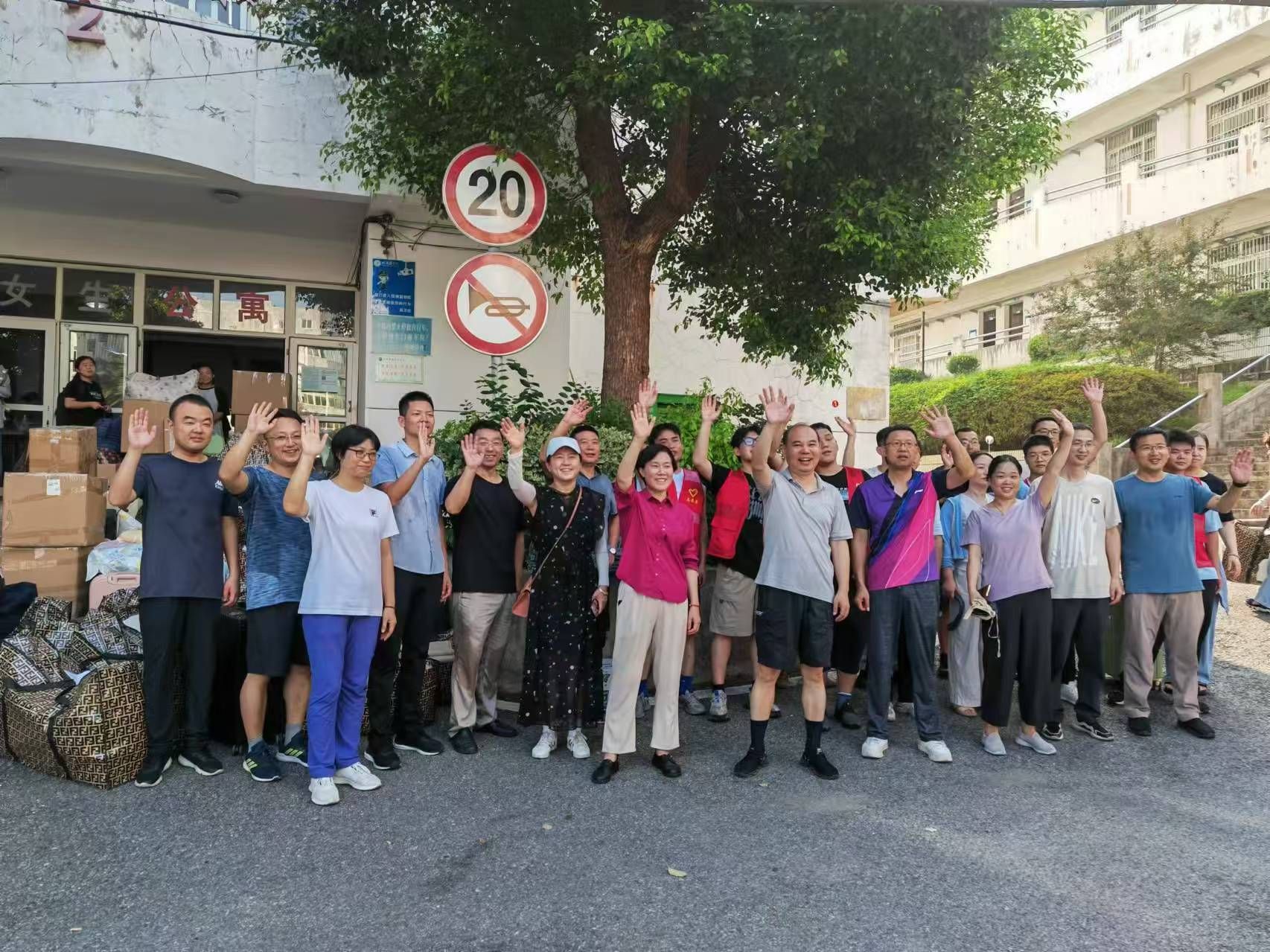 搬迁期间,学校组建了多支志愿服务队伍,包括由145名教工党员组成的党员志愿服务队、师生志愿服务队、后勤服务人员服务队等,与搬迁同学共同投入到校区搬迁工作中。虽烈日炎炎,但抵挡不住志愿者炽热的心,现场到处是志愿者忙碌的身影。大家分工明确、挺膺担当,手提肩扛、齐心协力,一次又一次穿梭于行李与车辆之间,一次又一次往返奔波于各楼层,即使汗水浸湿了衣衫却丝毫没有怨言。师生党员统一佩戴党员徽章,亮出党员身份,以身作则投入到搬迁工作中,让党旗在搬迁一线高高飘扬,让党徽在搬迁一线闪闪发光……从晨曦到日暮,在室外近40度的高温酷暑下,无论是搬运行李、疏散道路,还是解答疑问、提供指引,志愿者们都以饱满的热情和周到的服务做好各项工作,他们用劳累指数换来搬迁同学的笑脸指数、幸福指数,他们的身影成为了搬迁现场一道亮丽的风景线。